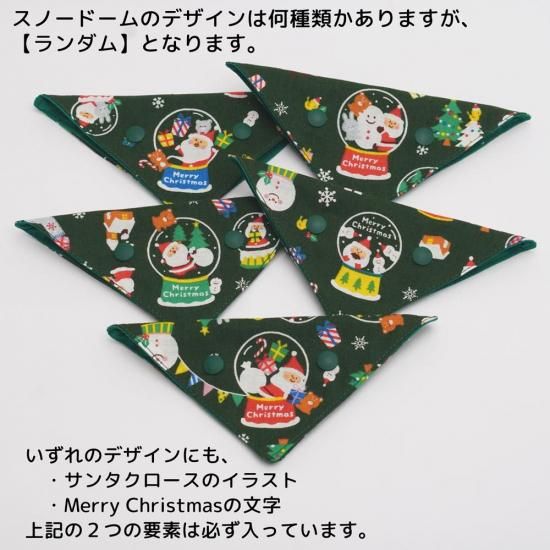 冬にぴったりのスノードームと、サンタクロースがコラボした楽しいデザインのバンダナです。